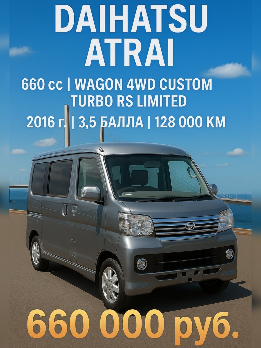 Купили для нашего заказчика 🇯🇵 DAIHATSU ATRAI WAGON 480 000 йен цена на аукционе 💹 Дата торгов 18.06.2025, курс йены: 0.57 660 000 руб. цена под ключ во Владивостоке Обращайтесь к нашим менеджерам для бесплатной консультации (WhatsApp, Telegram, звонки): +7 951 010-52-52 Ярослав Константинович - Корея, Япония +7 914 068-52-52 Ярослав Георгиевич - Япония, Корея +7 963 515-52-52 Алексей Сергеевич - Китай, Япония Больше фото в комментариях, @noharaautos