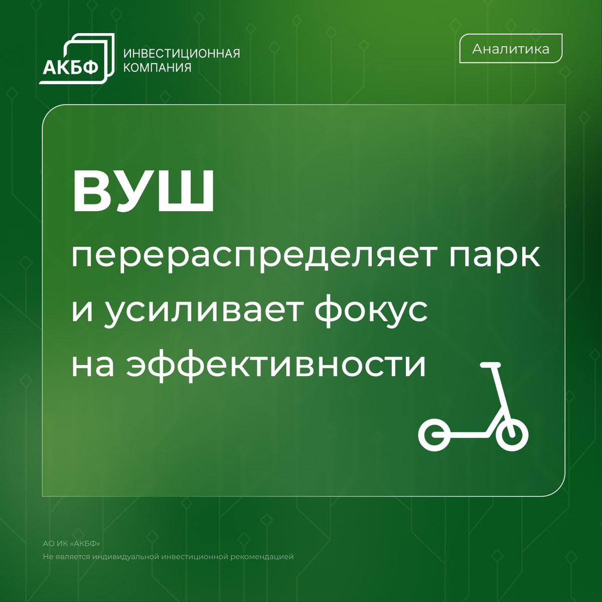 📌 ВУШ перераспределяет парк и усиливает фокус на эффективности Комментарий аналитиков АКБФ👇 В начале июня компания сообщила, что количество поездок на самокатах Whoosh в Южной Америке за январь–май 2025 г. выросло на 163% г./г., при этом флот сервиса увеличился на 30%, составив 10,4 тыс. самокатов. Однако, по данным за I полугодие 2025 г., основной российский рынок показал негативную динамику, что привело к снижению наших среднесрочных оценок справедливой стоимости компании. Несмотря на рост парка самокатов на 19% — до 237,8 тыс. единиц, число поездок сократилось на 10% по сравнению с аналогичным периодом прошлого года. Ключевыми негативными драйверами выступили усиление конкуренции на фоне ухудшения реальных доходов потребителей, неблагоприятные погодные условия в первом полугодии, а также технические проблемы, характерные для многих компаний потребительского транспортного сегмента. Менеджмент «ВУШ Холдинга» намерен улучшить ситуацию путём перераспределения парка самокатов межд
