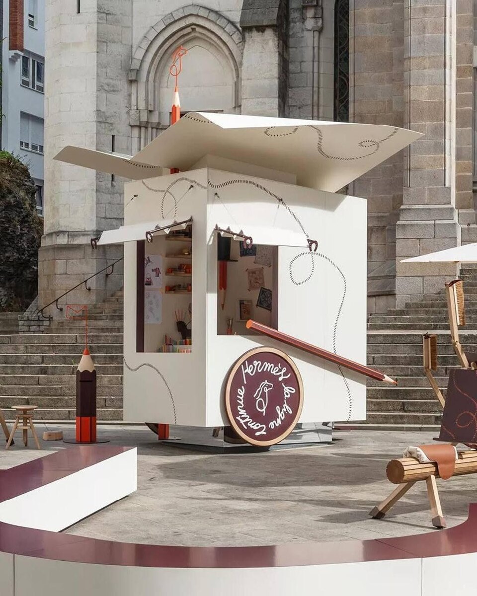 Hermes запустили передвижную скетч-станцию во Франции 🎨 Это небольшие рендированные корнеры с карандашами и мольбертами с авторскими раскрасками прямо на улицах. Для гостей проводят мастер-классы с профессиональными художниками. 🧡 — если хотели бы попасть!