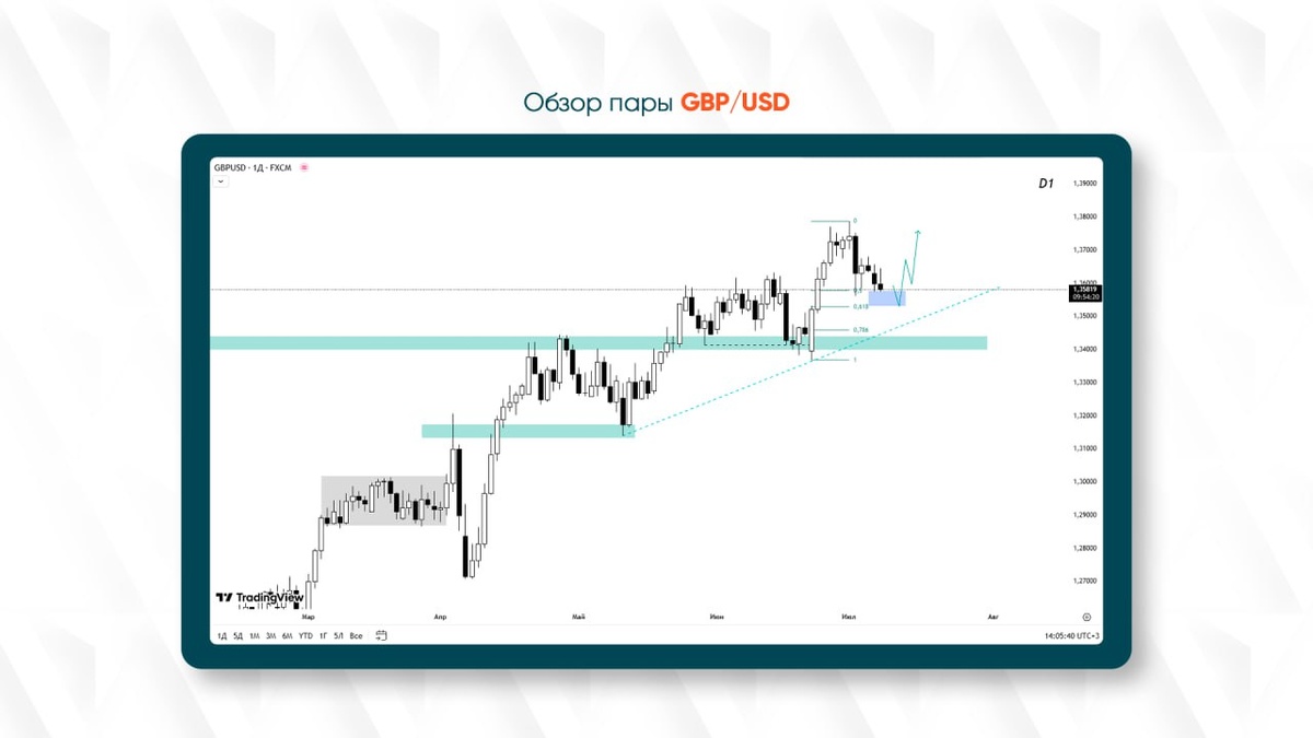 Фунт стерлингов демонстрирует уверенность на фоне умеренной коррекции — и это открывает возможности для продуманных входов в рынок. В статье разбираем текущую ситуацию по паре GBP/USD, ключевые уровни и сценарий с потенциальным профитом 1 к 3. Фундаментальная и техническая картина говорят в пользу продолжения роста. На дневном и 4-часовом графиках видна чёткая коррекция в рамках восходящего тренда — без обвальных свечей, с постепенным снижением объёмов и тестом важной зоны поддержки. Цена удерживается выше ключевых уровней, а структура остаётся бычьей: ни одного сигнала на смену направления пока не наблюдается. Такая ситуация говорит о том, что крупные участники, скорее всего, продолжают удерживать длинные позиции, выкупая просадки. Особое внимание стоит уделить уровню 1.3560. Именно в этой зоне возможен ложный пробой с резким отскоком вверх — типичная ловушка для продавцов, которые решат сыграть на продолжение коррекции. Такой сценарий может стать триггером для нового импульса вверх,