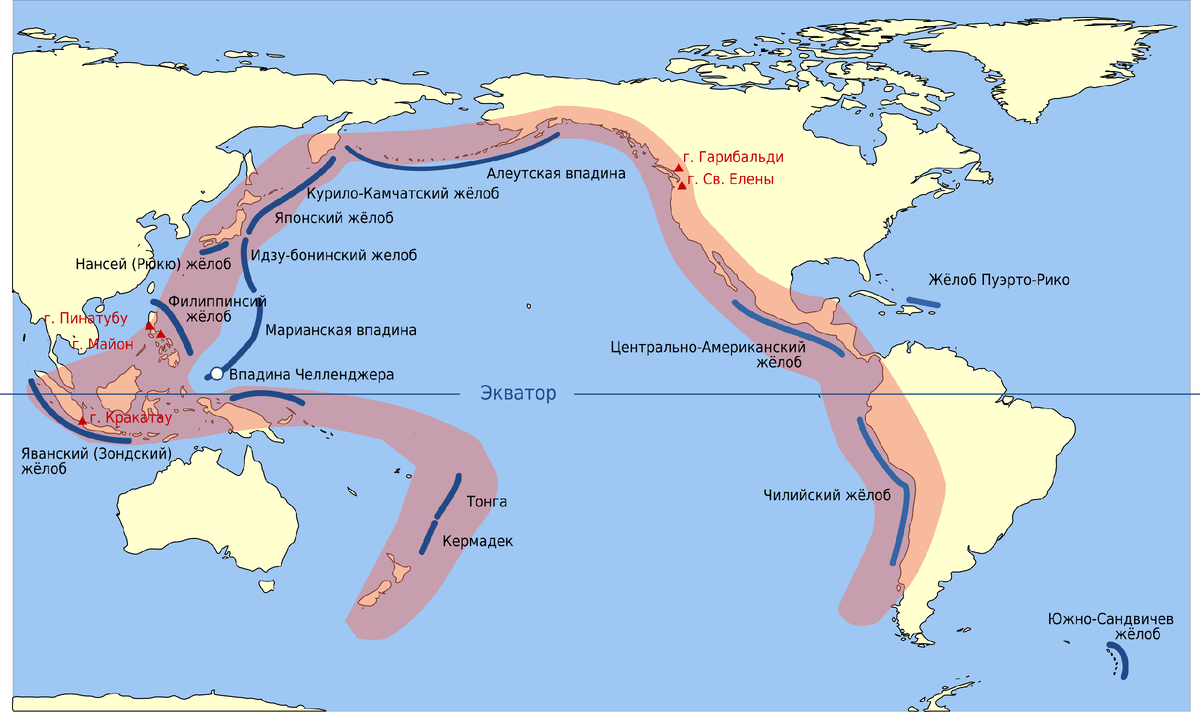 Длина кольца — более 40 000 километров, оно охватывает берега Южной и Северной Америки, Японии, Индонезии, Новой Зеландии, Аляски и, конечно, Дальнего Востока России. 🔹 В этом поясе расположено 75% всех активных вулканов планеты.