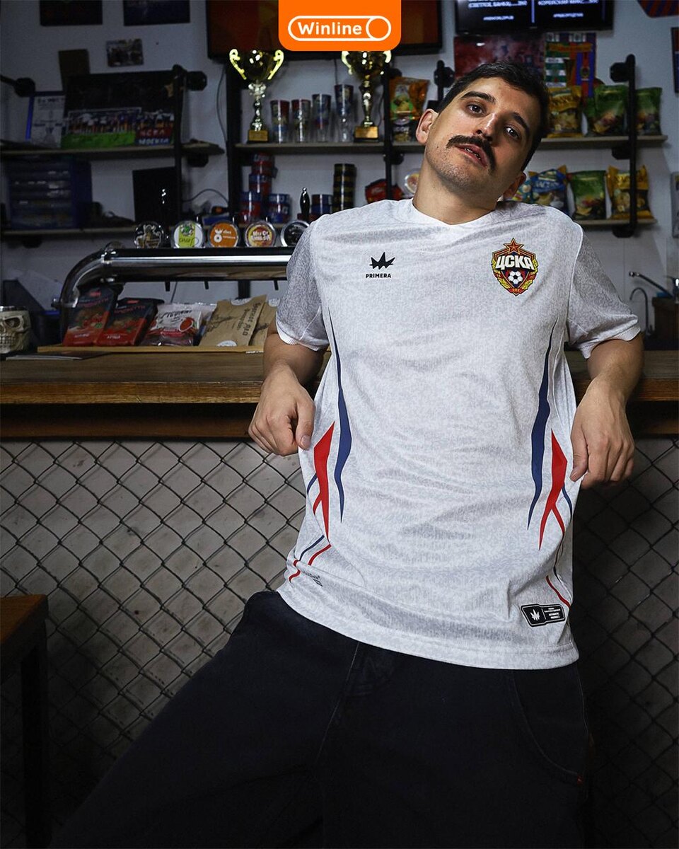 🐴👕 Гостевая джерси от ЦСКА — вынимайте! Армейцы выкатили выездную форму на новый сезон. Дизайн отсылает к 2005: узор напоминает текстуру Кубка УЕФА. В презентации поучаствовал наш слоняра Фил Воронин. Мысли? 🔥 — к этой футбе отлично подойдет Суперкубок 👎 — салатовый где потеряли?