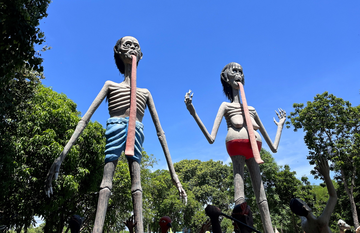 Как объяснить ребенку, что такое хорошо и что такое плохо? Тайцы делают это через призму буддизма. Вот, например, фотографии необычного храма в Паттайе. Это место называется Сад Адских мук (или Храма Рая и Ада). В него приводят детей, чтобы рассказать, что ждет грешников за те или иные злодеяния и проступки. Конечно, после этого дети боятся лгать, красть и обижать животных.
