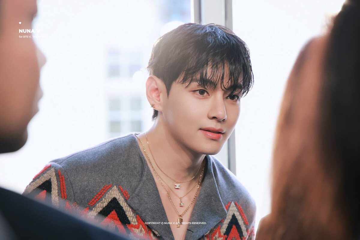 В ожидании вечера, социальная бабочка Тэ "порхал" среди гостей, заманчиво пленял фанатов и радовал СМИ, высовываясь элегантно позируя в окне особняка.