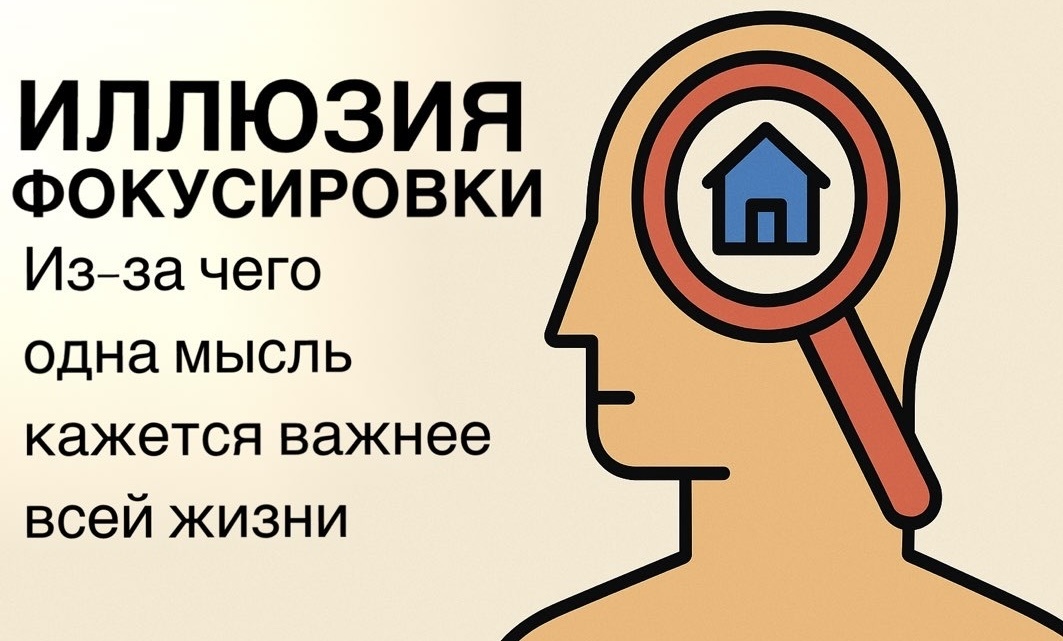 Сценарий: В думаете: вот перееду — и всё изменится. Или: куплю эту вещь — и заживу. Или: найду другую работу — и стану счастлив. Но после долгожданного события… оказывается, жизнь в целом осталась прежней. Почему мы так фокусируемся на одном аспекте и переоцениваем его значимость? Это — эффект фокусировки (focusing illusion): Когнитивное искажение, при котором один фактор кажется непропорционально важным только потому, что он в центре нашего внимания. Зачастую люди переоценивают влияние определённого фактора, например, на общее состояние счастья в жизни. Даниэль Канеман (лауреат Нобелевской премии по экономике) и Дэвид Шкаде провели ключевое исследование в 1998 году и описали эффект фокусировки в публикации «Делает ли проживание в Калифорнии людей счастливыми». Учёные провели исследование, в ходе которого опрашивали респондентов из разных штатов США. Вопрос, "Стали бы они счастливее, если бы жили в Калифорнии?", стал центральным в исследовании. Большинство ответило, что да, благодаря