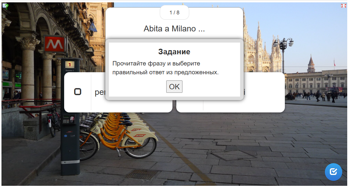 - Прослушивание итальянской речи с опорой на текст;