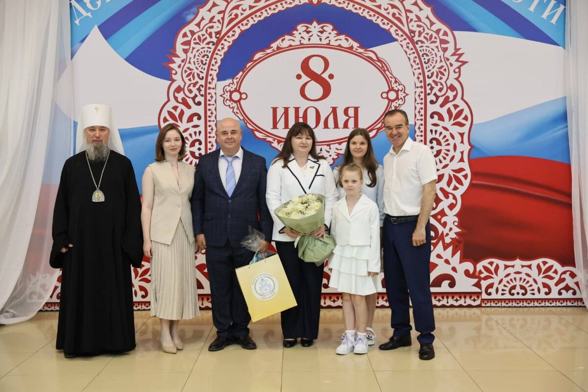 «Родительская доблесть» семьи Яготиновых Сегодня в Краснодаре Губернатор Кубани Вениамин Иванович Кондратьев вручил семье наших земляков медаль «Родительская доблесть». – День семьи – это не просто дата в календаре, а наш общий праздник, который каждый чувствует в душе. Семья – основа всего. Без любви, терпения и смирения не будет той семьи, которой мы дорожим с детства. В любые времена большие семьи – это огромная ответственность. Необходимо много сил, чтобы вырастить мальчишек и девчонок достойными гражданами страны, созидателями. Родина начинается именно с семьи. То, что мы вкладываем в детей сегодня, определяет, какой будет наша жизнь завтра. Хочу поблагодарить вас за родительский подвиг. Спасибо за то, что создаете уверенность в завтрашнем дне, являетесь надежной опорой Кубани и всей страны. Пусть счастье и гармония в ваших домах только множатся, берегите друг друга, – сказал Вениамин Иванович Кондратьев. Анна Леонидовна и Владислав Владимирович Яготиновы женаты уже 24 года, в