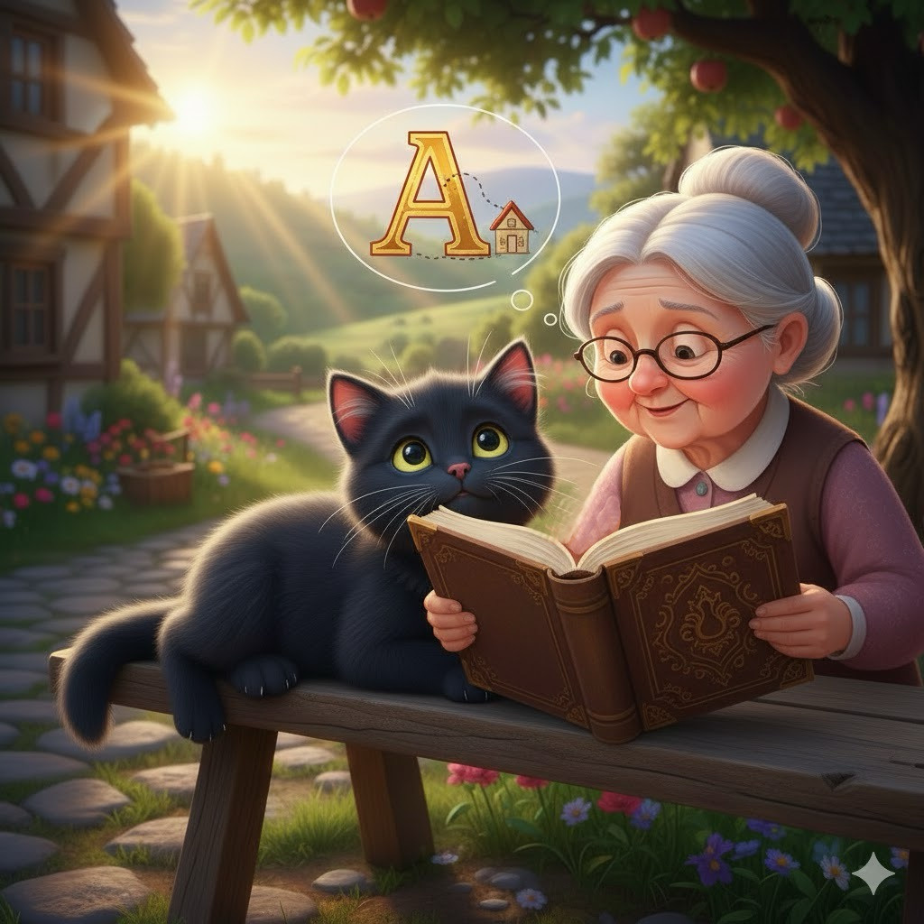 После того, как Мур-Мур понял, как важно уметь читать, он твёрдо решил выучить все буквы. Утром котик прибежал к бабушке, сел рядом на скамеечку и сказал: — Бабушка, научи меня буквам! Я хочу читать сам! Бабушка улыбнулась и принесла старую книгу с большими красивыми буквами. — Вот, Мур-Мур, начнём с первой буквы — «А». Видишь, она как маленький домик с крышей? — Мяу! Домик! Запомнил! — обрадовался котик. Целый день Мур-Мур ходил по двору и мяукал: — А-а-а! А как домик с крышей! На следующий день бабушка показала букву «Б». — Буква «Б» — это как пузатый чайничек! — сказала она. — Мяу! Пузатый чайничек — это «Б»! — запомнил котик. Так каждый день Мур-Мур учил по одной букве. Чтобы не забыть их, он сочинял истории. Например: 🌟 Буква «В» — это как ворота, через которые бегают его друзья. 🌟 Буква «Г» — как гусь, который вытянул шею. 🌟 Буква «Д» — как дом с трубой. А чтобы тренироваться, котик выкладывал буквы из палочек, листочков и даже камушков во дворе. Сорока приносила блестящие б