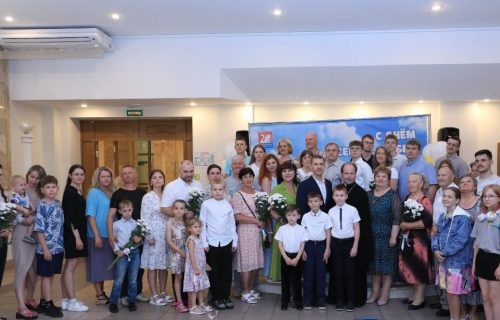 Радость во много раз сильнее, когда есть с кем её разделить. И сегодня – самый подходящий случай. В ДК «Вперёд» состоялось торжественное мероприятие в честь Дня семьи, любви и верности. В зале собрались молодожёны, юбиляры супружеской жизни, семьи участников СВО и многодетные семьи. Главных героев торжества поздравил глава Долгопрудного Олег Сотник: «Семья — надёжная опора, крепость в жизни каждого человека. Во все времена семья была и остаётся источником любви и уважения. Только в счастливой, любящей семье появляются счастливые дети. Желаю всем любви, счастья, крепкого здоровья и благополучия!» Поздравления, подарки, аплодисменты и, конечно, букеты ромашек сегодня получили супружеские пары, которые вместе 50 лет, молодожены, многодетные семьи. И в каждой – своя история любви. «Мы 50 лет вместе. Строили КАМАЗ, там и познакомились. Секрета нашей семейной жизни нет – просто любим, бережём друг друга. У нас двое детей, четверо внуков. Семья – это счастье», — поделились Голендухины Татьяна