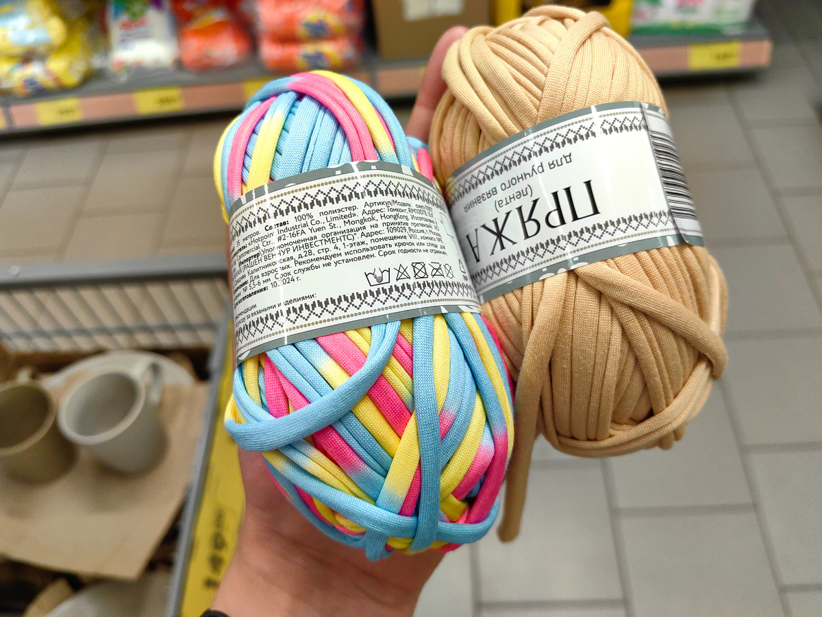 Всем здравствуйте! Сходила в ближайший магазин Чижик, надо же, из новинок даже пряжа в наличии. Моточки не совсем привычные, пряжа лентой, пригодится для ручного вязания, для поделок. Посмотрела, в корзине из цветной пряжи только пестрая, градиентом, рядом однотонные бежевые и черные моточки. Это не хлопок, полностью полиэстер. По длине ленточка 35 м. Посмотрела, ценники красные пестрят, а на полке рядом джинсы. Женские, пояс на резинке, вдет шнурок. Джинсы не тонкие, летом жарко будет в таких, в прохладную погоду отлично будет. Размеры по 56. Обратила внимание, посадка не низкая, поясницу прикроют. Выглядят вот так, светлый голубой с потертостями. Низ прямой, нет резинки. Не совсем уверена, что для высокого роста, на вид брючины не удлиненные. Скорее всего стандартные. Молнии нет, проще надеть. По составу 50% хлопка, остальное спандекс и полиэстер. Обычно указывают процент эластина, если 2 и немного больше, то так, неплохо тянутся. Посмотрела, не скажу, что очень эластичные.