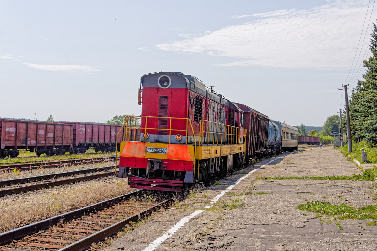Два грузовых вагона, один пассажирский... Тут, возможно, кто-то подумал о том, что это грузопассажирский поезд. Но нет, таковых у нас в стране вроде как не осталось. В нашем же случае, привезли поливомоечный состав, который позже ещё часа два обрабатывал территорию станции, катаясь туда-сюда по разным путям. Кстати говоря, этот же поезд я встретил на станции и в предыдущий день. Тогда, правда, он проехал ходом. В целом, поливомоечный поезд - штука необычная. Как минимум, в том плане, что нигде, кроме как на Северной железной дороге, я их и не встречал. Здесь же такой ездит каждое лето. Ну а привёз его в этот раз Ивановский тепловоз ЧМЭ3 под номером 3290, который до этого года мне ещё не встречался.