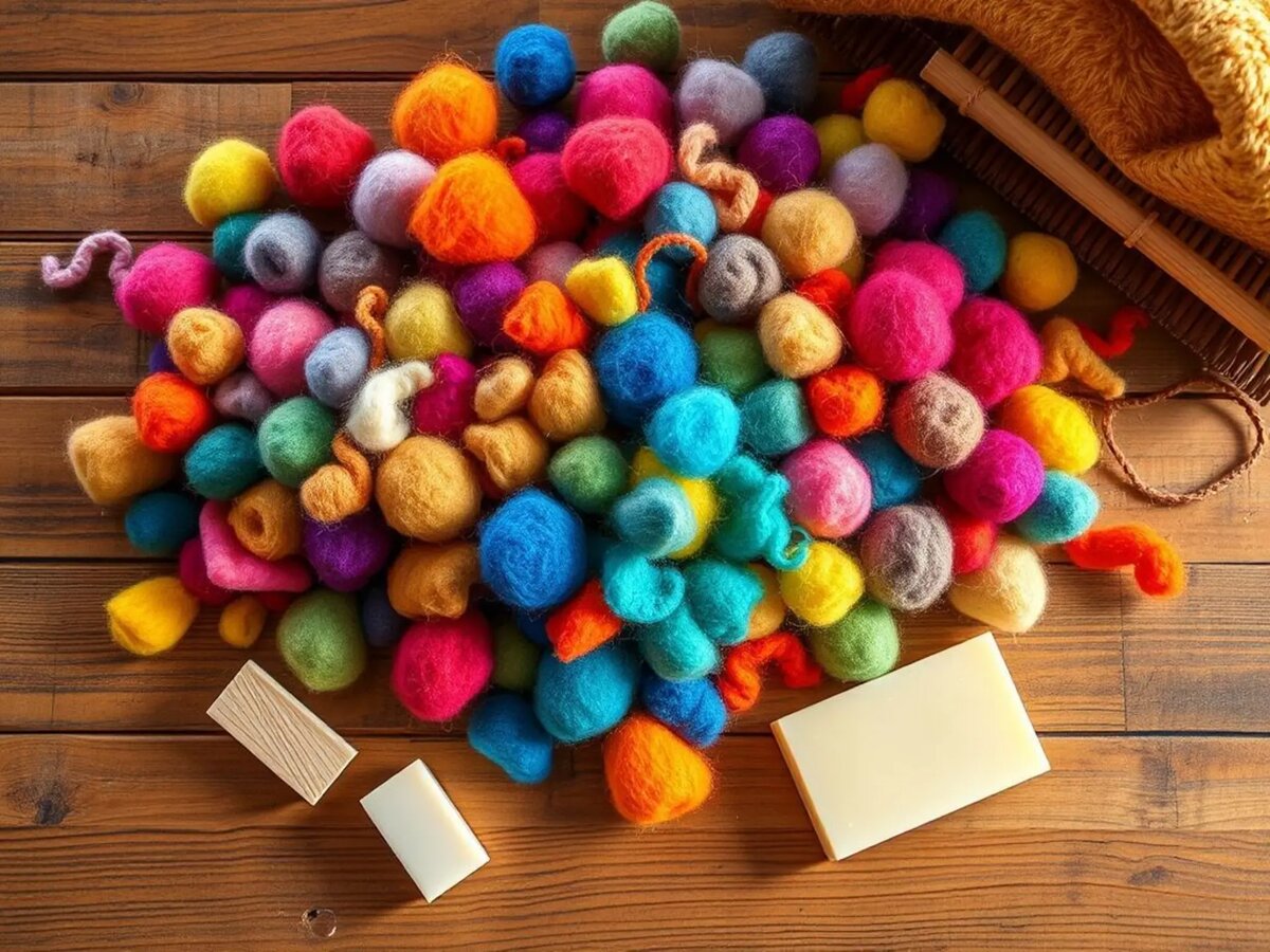 Идеально для плоских объектов: радужных панно, шарфов или подставок под чашки. Суть – шерсть раскладывается слоями, смачивается мыльным раствором, а потом вы катаете и трёте заготовку, пока волокна не уплотнятся. Плюсы?
