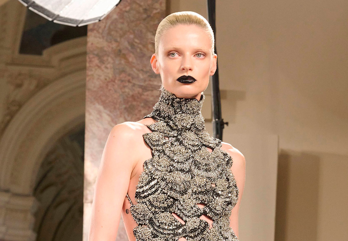 Когда дело доходит до красоты, Schiaparelli никогда не разочаровывает. Будь то культовый буфф Кендалл Дженнер с показа весна-лето 2024, вдохновивший тысячи девушек на объёмные укладки, или кристаллизованый макияж от Пэт Макграт — каждый раз бренд дарит море вдохновения. Неудивительно, что в кутюрном показе сезона осень-зима 2025 Schiaparelli представили нечто эффектное: смелый запоминающийся образ, в котором хочется разглядывать каждую деталь. Сразу после блестящего Le Bal d’Été в воскресенье бренд показал гламурную и почтительную интерпретацию современной красоты. Над образами работали легендарный визажист Дейм Пэт Макграт и стилист Гвидо Палау. «Это почти что исследование чёрно-белой фотографии. Как всегда у Schiaparelli, кожа выглядит ангельски сияющей благодаря хайлайтеру и спрею для эффекта "стеклянной кожи" (Skin Fetish Glass 001), который мы наносили только на скулы», — поделилась Макграт за кулисами. Schiaparelli Couture коллекция осень 2025 Глаза остались почти без макияжа — т
