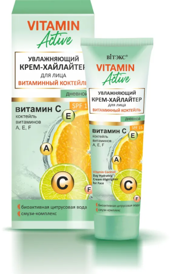 Крем-хайлайтер «Витаминный коктейль» от Белита-Витэкс — это многофункциональное средство, которое сочетает в себе уход, защиту и декоративное сияние. Продукт особенно подойдет тем, кто ищет легкое средство для ежедневного использования с дополнительным эффектом подсвечивания кожи. Несмотря на невысокий SPF, крем обеспечивает базовую защиту от солнца и комплексный уход за кожей.