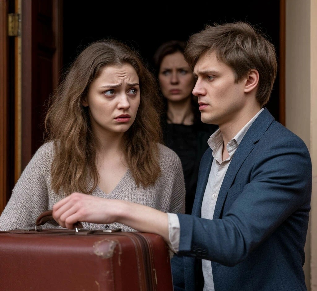 Она потянула чемодан за собой, но Денис шагнул вперёд, перекрыв выход.