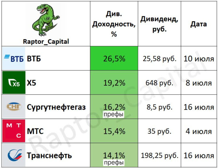 • Див. доходность 19,2% (648 рублей), последний день для покупки под дивиденды – 8 июля.