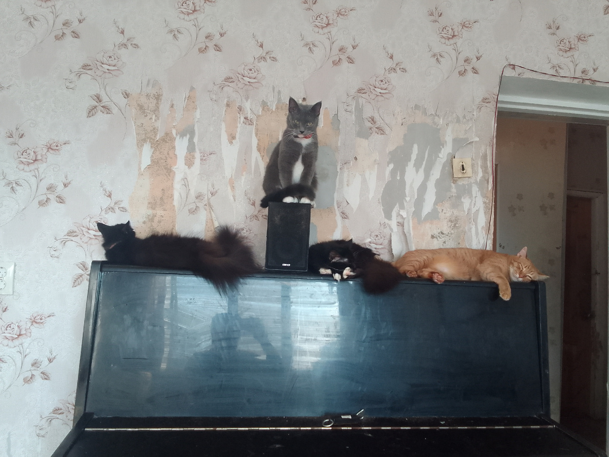 Вот уже целый год мы восемь талантливых кошек и котов вместе с Сержем ведем этот блог. И вот вопрос для всех девятерых - чем запомнился этот год? Этот год прошел прикрасно. Прошлым летом мы были в Маскве. Этта очинь бальшой город и там бальшая квартира и многа книг. Осинью мы были в диревне и пымали агромную крису. А зимой я мурчала песенки в октаву Сержу и личила его сердце (я демонов ганяю, но не бесов, бесов церковь ганяит). На Новый год играла йолочным шариком в футбол. А исчо на Новый год сматрели балет Чайковского Щелкунчик. Там был крисиный царь и девочка, каторая его баялась. А потом они танцевали в стране канфет. И колокольчики играли в высокой октаве. Прочла в учебнике гармонии о ладе с уменьшенной октавой. На Пасху катала яцо. На день Победы мурчала песню. Летом мы проверили новую мебель Сержа и сказали что годна мебель. А я придумала сказку про ката баяна и царицу Василису. Этот год прошел замичательно. Прошлым летом мы были в Маскве. В Маскве много чего интиресного есть. П