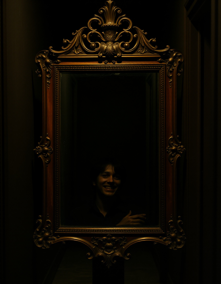 Зеркало досталось мне от бабушки. Огромное, в тяжёлой раме, с потёртым стеклом. Я поставил его в коридоре — просто чтобы не выкидывать. Первую странность я заметил вечером. Проходя мимо, мельком глянул на отражение — и заметил, как я моргнул, хотя сам не моргал. Я замер. Посмотрел в зеркало внимательно. Всё было нормально. На следующую ночь я снова проходил мимо. И моё отражение задержалось на долю секунды дольше, чем я. Как будто… не хотело уходить. Я начал закрывать зеркало тканью. Но оно сбрасывало её само. Утром ткань оказывалась на полу. Однажды я проснулся среди ночи от ощущения взгляда. Зашёл в коридор — зеркало было открыто. Я подошёл ближе. Отражение стояло неподвижно, но на его лице была улыбка. Я точно не улыбался. А потом оно подняло руку и коснулось стекла изнутри. И я понял — это уже не я.
