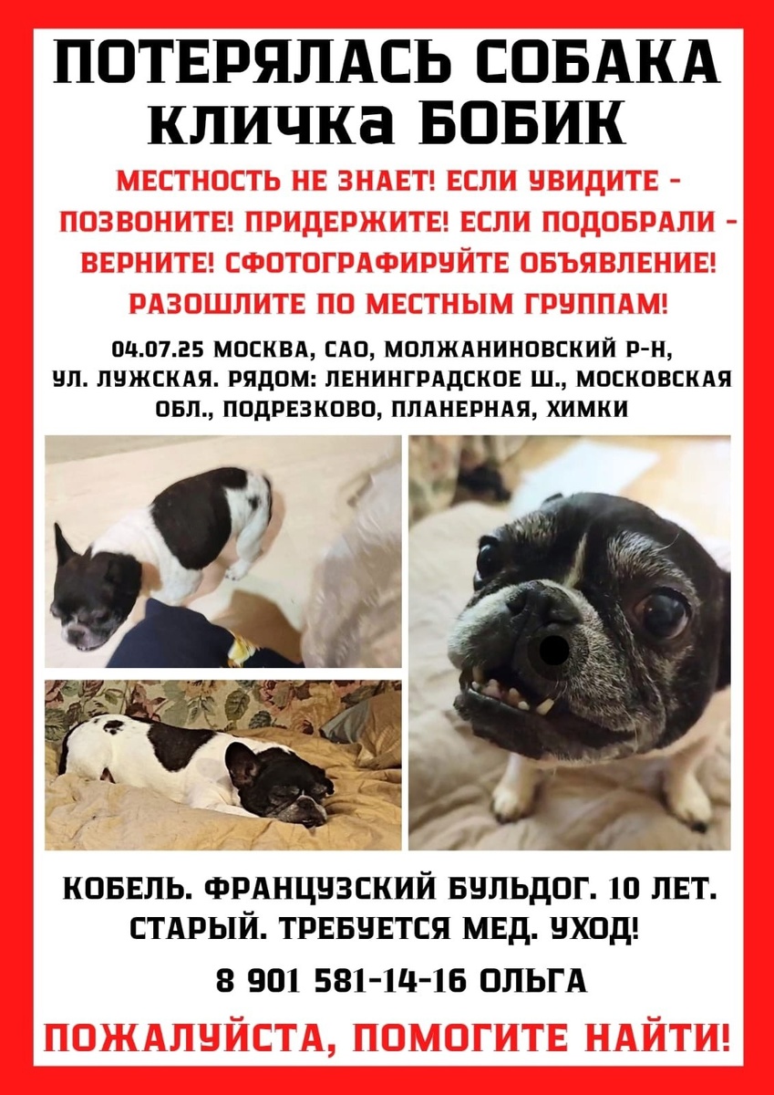 ↩ Помощь французским бульдогам.Найден.Потерян. ⬇ Помогите найти старичка! Звоните 89162965030