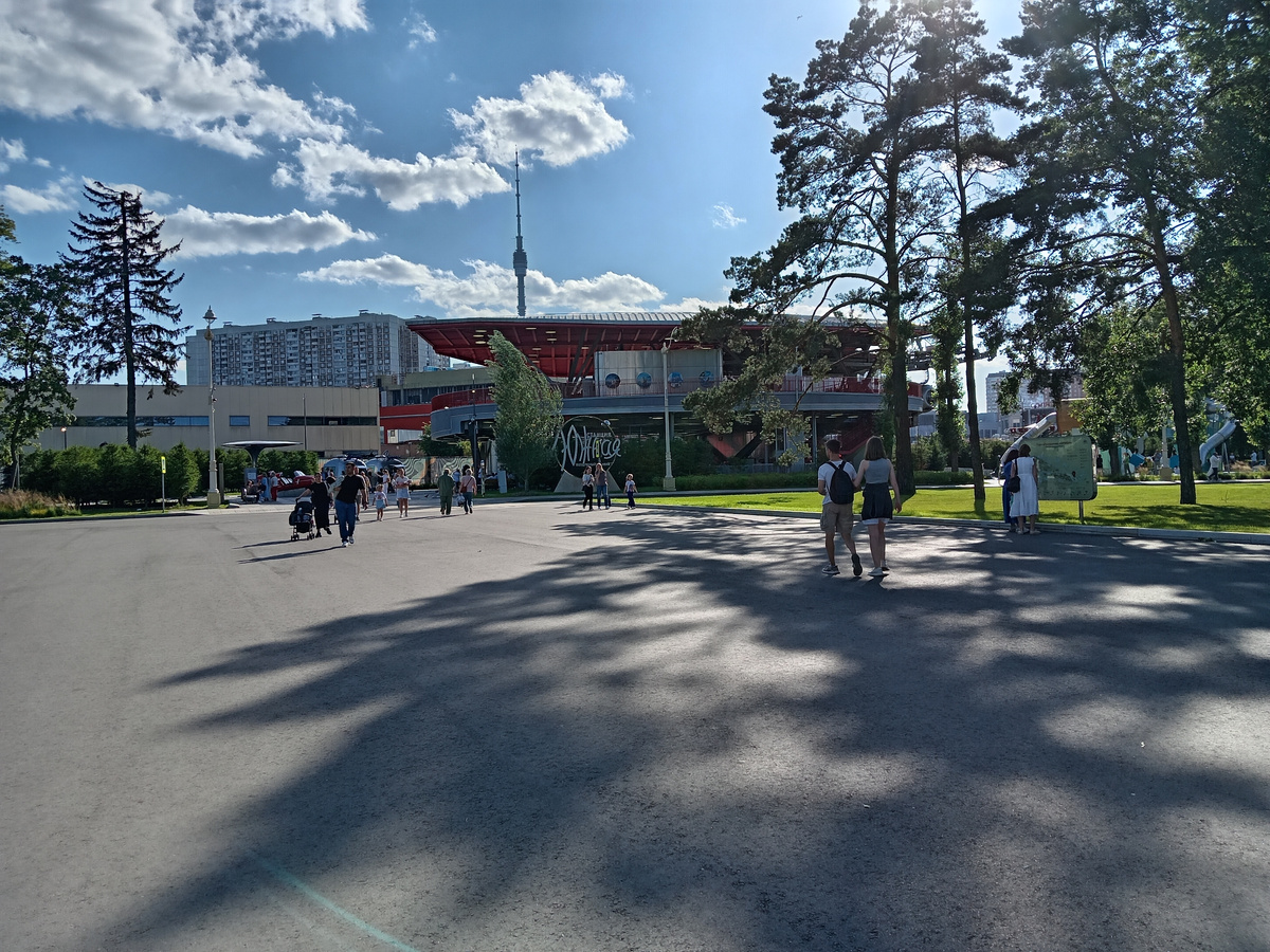На фоне позорного закрытия московского монорельса я вспомнил, что в глобальном плане не так давно на ВВЦ была открыта канатная дорога. Она идёт примерно от входа на ВВЦ до примерно проспекта Мира, 119С531, рядом - ставший ныне каким-то немного больше не дружественным павильон "Азербайджан". К слову, на сайте ВВЦ указана длина этой канатки в 769 метров, а "Яндекс-карты" даже без учёта некоторого перепада высот насчитали 785 метров. Эта канатка, в отличие от монорельса, никакого транспортного функионала не несёт. Она слишком короткая, чтобы куда-то серьёзно увезти, слишком дорогая (взрослый билет от 500 (с понедельника по четверг) до 600 (с пятницы по воскресенье)) и слишком медленная. Но не как общественный транспорт, а как аттракцион "посмотри на ВВЦ и Останкино с высоты" она даёт (вернее, после закрытия монорельса она вне конкуренции, если не считать обзорные площадки на Останкинской телебашне и чёртово колесо) хорошую фору монорельсу. С последнего было хорошо видно красивые здания телецентра, Останкинскую телебашню и Останкинский пруд. С канатки - чисто территория ВВЦ, не доступная в плане обзора с монорельса.