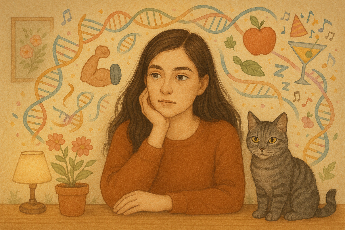 Потому что, как выяснилось, жизнь — это не только ДНК, которую нам вручили родители с пожеланием “разбирайся как хочешь”. Жизнь — это ещё и то, как мы с этой ДНК обходимся. Как кормим себя. Как спим (или не спим). Как дышим. Как работаем на износ. Как живём рядом с шумной дорогой. Как справляемся со стрессом — или как не справляемся. И вот это всё — питание, стресс, сигареты, прогулки, загрязнённый воздух, лишний вес, хроническое недосыпание и бесконечный поток плохих новостей — влияет на наши гены.