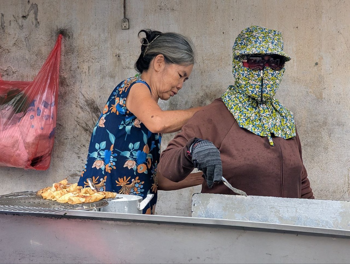 Рынок. Нячанг. Вьетнам. 05.07.2025 Жарится рыба, сыр тофу, перекладывается и увязывается пучками зелень. Водоросли в виде винограда, лепёшки с морепродуктами, куриные лапки в разных вариациях термообработки. Все что душе угодно. Одно слово - рынок!