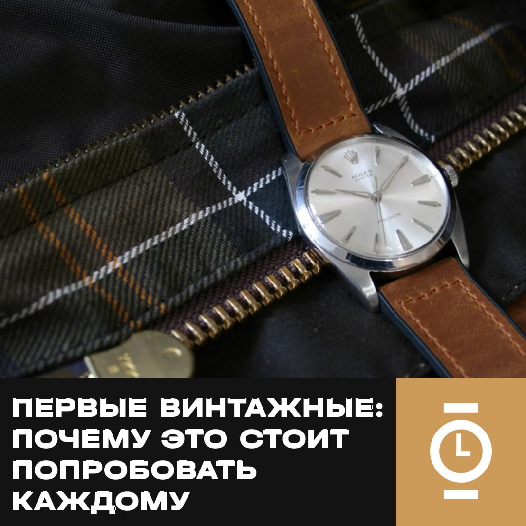 ПЕРВЫЕ ВИНТАЖНЫЕ: ПОЧЕМУ ЭТО СТОИТ ПОПРОБОВАТЬ КАЖДОМУ #факты_WD У моего друга страсть к часам началась ещё в детстве. Он всегда носил только новые модели — так сложилось: родился в эпоху потребления, где старые вещи легко заменялись новыми. С годами его коллекция росла, цены — тоже, и в какой-то момент он смог позволить себе часы, о которых раньше только мечтал. Но сам процесс начал вызывать усталость. Всё стало слишком предсказуемо, и тогда он решил попробовать винтаж. Выбор винтажных часов оказался настоящим испытанием: множество моделей, размеров, рисков — от подделок до «убитых» экземпляров. Ему, с довольно крупными запястьями, хотелось что-то не меньше 36 мм — классический размер, универсальный и уместный и под костюм, и под джинсы. Бюджет — около £2,000. Поиск занял три месяца. Сайты, форумы, аукционы… И вот, наконец, находка: Rolex 6424 Oyster Precision «Big Oyster» 1965 года. Часы были на eBay, а продавец оказался небольшим винтажным дилером всего в 40 минутах от дома. Вме