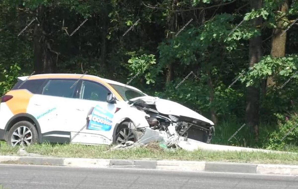 Этим утром на проспекте Маркса произошла серьезная авария: каршеринговый автомобиль протаранил газон и снес столб
