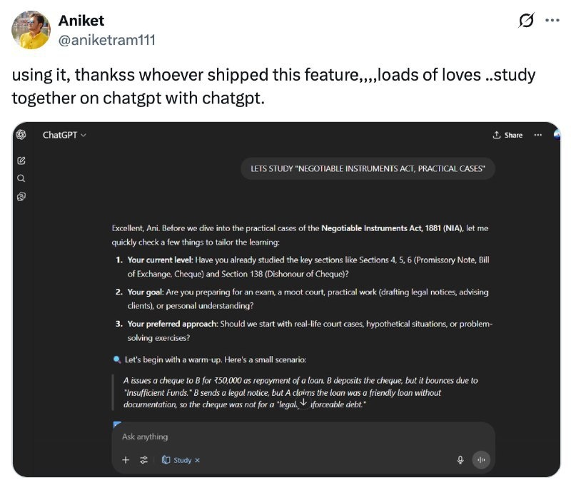 ChatGPT прокачивается до учителя — у некоторых уже появилась новая фича Study Together. Теперь бот не просто отвечает на вопросы, а реально учит: строит целые мини-курсы, сам задаёт вопросы и вытаскивает из тебя знания даже без сложных промтов. Можно смело называть личным репетитором в телефоне. Когда зарелизят для всех — пока неясно, но ждать осталось недолго. Подробнее: https://hard-tm.su/threads/100510/ 🕹HARD-TM — Подписаться