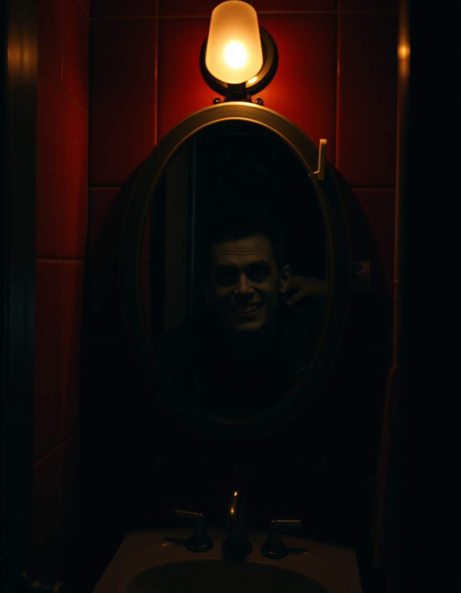 Проснулся среди ночи — захотел попить воды. Прошёл мимо ванной, свет был выключен, но что-то заставило меня остановиться. Я посмотрел в сторону зеркала. Отражение было... неправильным. Я стоял в коридоре. А в отражении — стоял я, но немного ближе к зеркалу. И он улыбался. Я — нет. Я включил свет — отражение стало обычным. Успокоился, подумал, что глюк от недосыпа. Но с тех пор, каждую ночь, если не включать свет, зеркало показывает другую версию меня. Он двигается чуть раньше. Смотрит прямо в глаза. Иногда шепчет, но звуков нет. Однажды я решил записать это на камеру. Но на видео зеркала — ничего необычного. Только пустой коридор. Я стал заклеивать зеркало ночью. А потом однажды нашёл плёнку сорванной с внутренней стороны стекла.