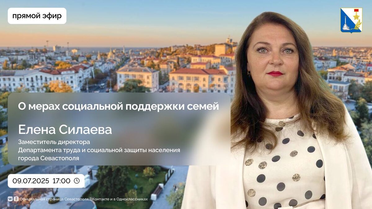Как государство поддерживает семьи с детьми? Какие меры поддержки многодетных семей есть в Севастополе? Как оформить социальные выплаты? Ответы на эти и не только вопросы — в прямом эфире с заместителем директора департамента труда и социальной защиты населения Севастополя Еленой Силаевой. 🍂Присоединяйтесь к трансляции 9 июля в 17:00 и задавайте вопросы в комментариях по ссылке. Правительство Севастополя