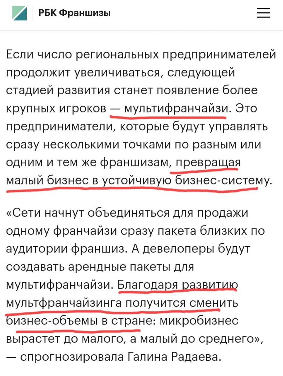 Ура! Вышла статья наших медиа партнёров РБК.Франшизы и подкаста 'Я у мамы франчайзи", смыслы закладывали от ПСФ широкие : от развития отраслевых форумов и выставок , до развития мультифранчайзинга и корпоративного волонтерства сотрудников сетей. Изменения идут на всех уровнях, а через франчайзинговые сети внедрение инноваций в МСБ происходит наилучшим способом https://biztorg.ru/news/6842dff19a79470d4995f620 #Отраслевыетреки #ПСФ #РБК.франшизы