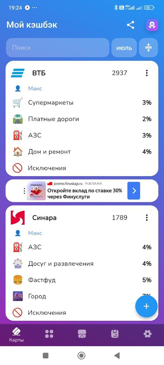 Продолжаю пользоваться систематизатором кешбека Просто шикарная вещь, рекомендую😄 Если есть вопросы - спрашивайте. В краце это приложение в которое вы вносите все кэшбэки которые у Вас есть по разным картам и приложение даёт Вам возможность перед покупками быстро посмотреть, с помощью какой карты - закупаться😅