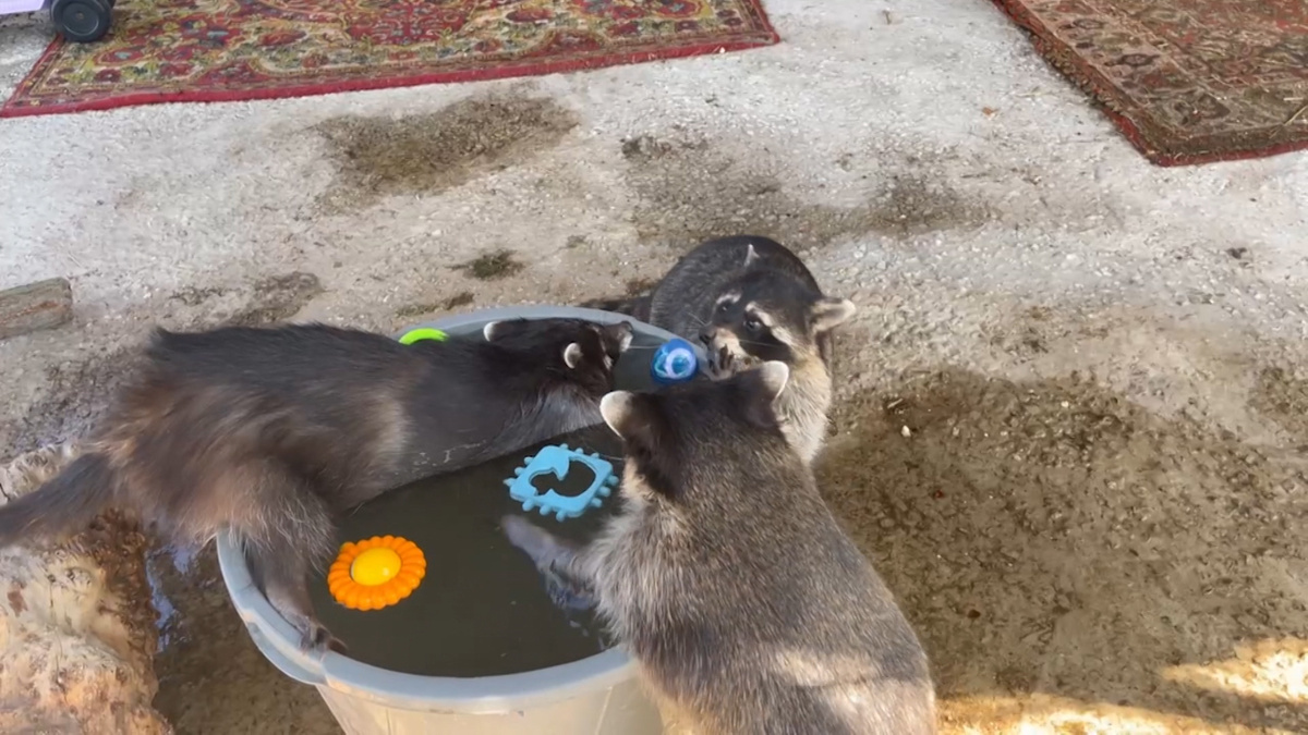 В волгоградском зооцентре еноты и медведи спасаются от жары ваннами и арбузами
