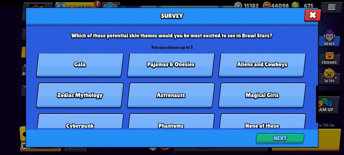 😱 ФУРРИ В BRAWL STARS? 🗓 За последние часы Brawl Stars разослал нескольким игрокам опрос, в котором они могут проголосовать за будущие тематики, которые хотели бы видеть в игре, и вот все варианты: • Стимпанк • Спортзал • Феи и драконы • Питомцы • Нуар • Фурри • Гала • Пижамы и комбинезоны • Инопланетяне и ковбои • Зодиакальная мифология • Астронавты • Магические девочки • Киберпанк • Фантомы 🤔 Какую из этих тематик вы бы хотели увидеть в игре? ✅Новости по Clash Royale - ТЫК Мир Supercell. Подписаться