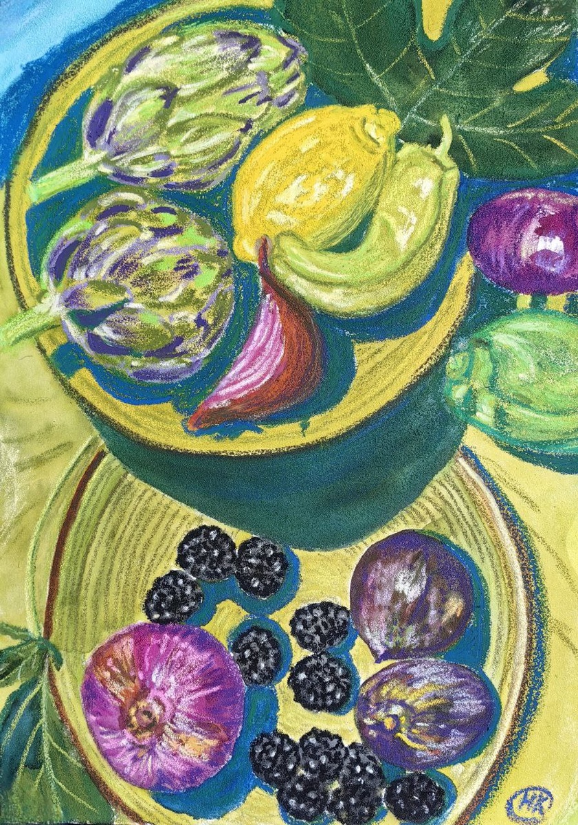 К проекту @artofpastels нарисовала очень насыщенный овощами , фруктами и ягодами референс .