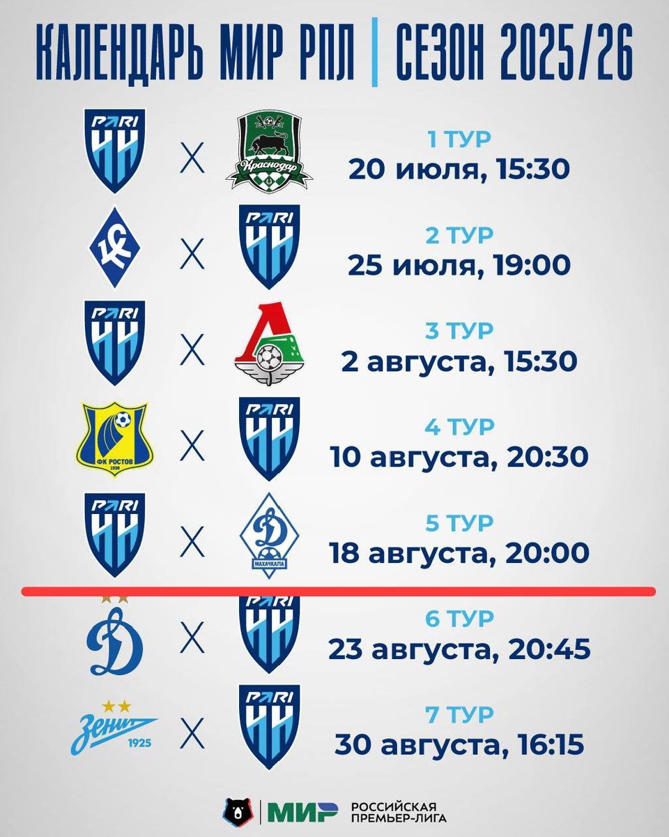 Далеко не секрет, что Нижний проведет первые домашние игры на резервном стадионе. Помимо ремонта домашней арены причиной является мероприятие Росатома. Рядом со стадионом состоится фестиваль «атомных» городов, а вечером на самой арене пройдет масштабный концерт, режиссером-постановщиком которого является аж сам Игорь Крутой. Весь этот движ состоится 20го августа. А это значит, что на стрелке мы встретимся с вами уже в сентябре.