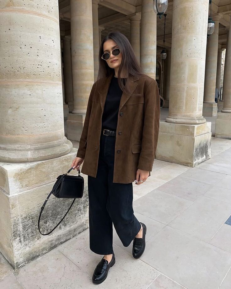 Универсальный верхний слой: Классический тренч, кожаная куртка (или качественная экокожа), кардиган оверсайз из мягкой шерсти, строгий блейзер.