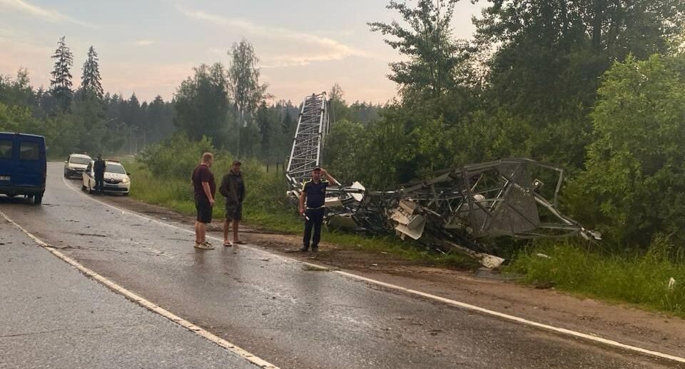 В муниципальном округе Истра из-за сильного ветра на дорогу упала вышка сотовой связи. Движение машин остановилось. Начальник производственного комплекса ГУП МО Вячеслав Чукин сообщил 360.ru, что она обесточена. Металлическая конструкция перекрыла обе полосы на трассе в районе деревни Сокольники. По словам Чукина, электрики оперативно обесточили конструкцию, и она не представляет опасности. «Не выдержала конструкция. Видно, болты там посрывало. Упала на проезжую часть, перекрыла движение. Мы вызвали погрузчик, ДПС перекрыло движение. Мы его сдвинули. Сейчас подметем, чтобы было чисто, ну и постараемся к завтрашнему дню все демонтировать», — сказал он. В поселке Огниково выпал град с перепелиное яйцо. В поселке Чеховском упало дерево, рядом с санаторием «Истра» пошел сильный дождь с порывистым ветром. Около дома по улице Урицкого, 40 упали сразу два дерева, прижав машину. Еще два авто оказались под рухнувшими деревьями на Юбилейной улице, 11. Советская улица, по словам очевидцев, вся в