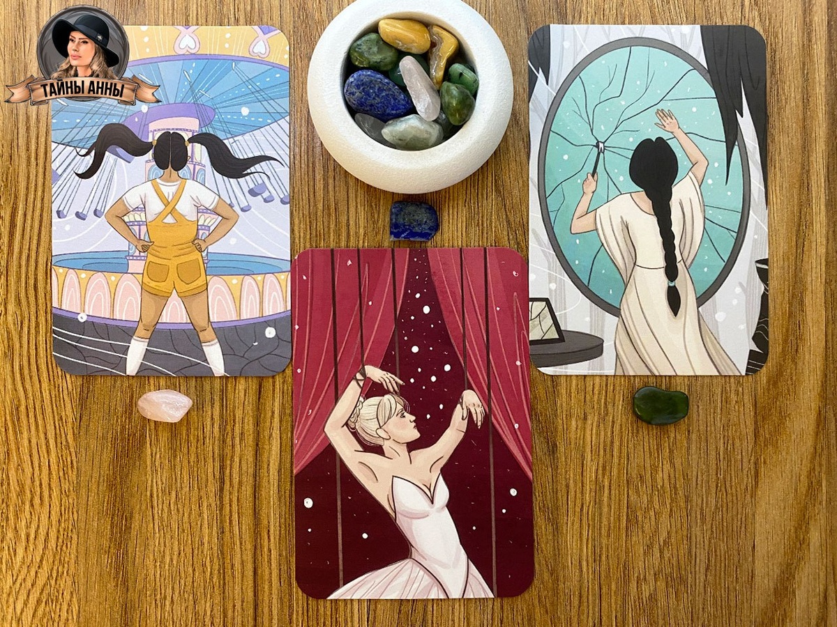 🌙 Я принимаю свою зрелость и самостоятельность... На сегодня всё! Завтра будет новый день и новые расклады! А пока — метафорические карты этого вечера на сон грядущий. Подумайте, о том, что они вам навевают... Аффирмация на вечер и утро: «Я принимаю свою зрелость, освобождаюсь от чужих манипуляций и смело выхожу в реальный мир» ◈ Инфантильность. Взрослая девушка в детском комбинезоне и карусель на заднем плане символизируют бесконечное кружение в детских фантазиях. Да, весьма заманчиво остаться в беззаботном детском мире, где всё просто и понятно, где кто-то другой принимает за нас решения! Инфантильность — это не просто нежелание взрослеть, это страх перед ответственностью за собственную жизнь, попытка спрятаться от сложности мира за маской наивного и беззаботного ребёнка... ◈ Марионетка. Человек, отказывающийся от взросления, становится лёгкой добычей манипуляторов. Надо заметить, что кукловоды бывают разные — иногда это властные родители, иногда хитрые партнёры, а порой и собст