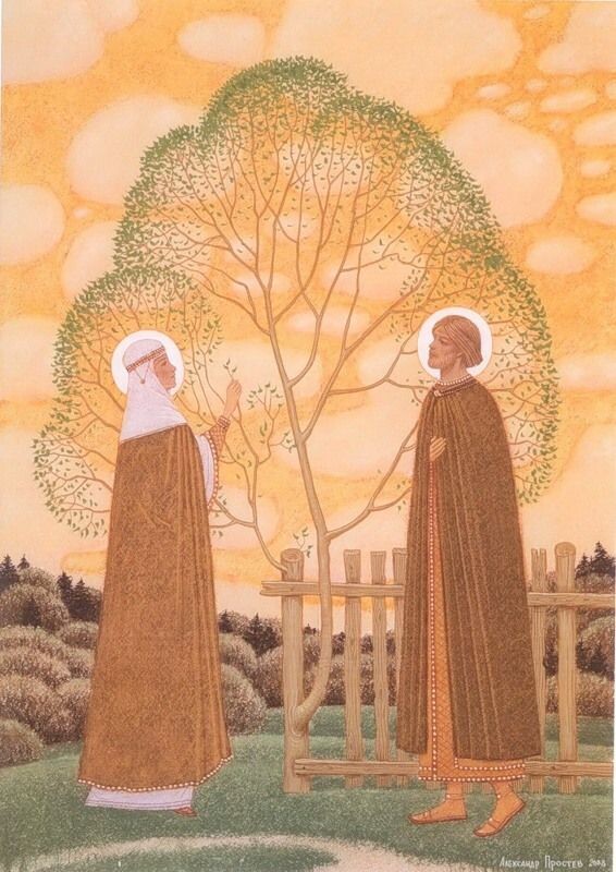 Мои любимые картины Художника Александра Простева: важно видеть в человеке свет. Работы, посвящённые благоверным князьям Петру и Февронии Будем всему отдавать подобающее: телу дадим пищи столько, чтобы живо было, и достаточное одеяние; душе же отдадим всю силу и все усердие, чтобы питать ее и очищать размышлением о Божественных вещах, молитвою и слезами и чтением Божественных Писаний, и таким образом сделать достойною восприять Божественный свет Солнца Правды, Бога, Который и оправдает нас благодатию Святаго Духа, и единением с Собою соделает праведными, достойными насладиться неизреченными благами Царства Его. Симеон Новый Богослов Смиренная душа всегда светла. Омрачение души начинается, когда она станет много о себе думать, ибо это дело темных сил. Феофан Затворник