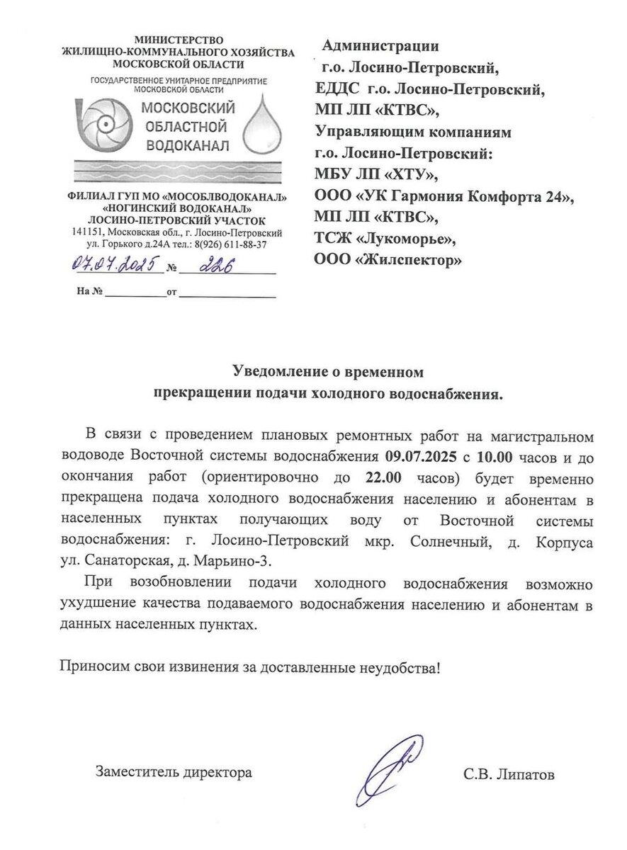 🚱 Завтра в мкр. Солнечный на весь день отключат воду