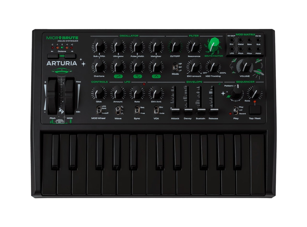 MicroBrute вернулся в новом дизайне НЛО 😅 Как пишут сами Arturia, это все тот же аналоговый моно-синт с фильтром Штайнера-Паркера и МИКРО-матрицей модуляции. Цена €350 #gear #arturia
