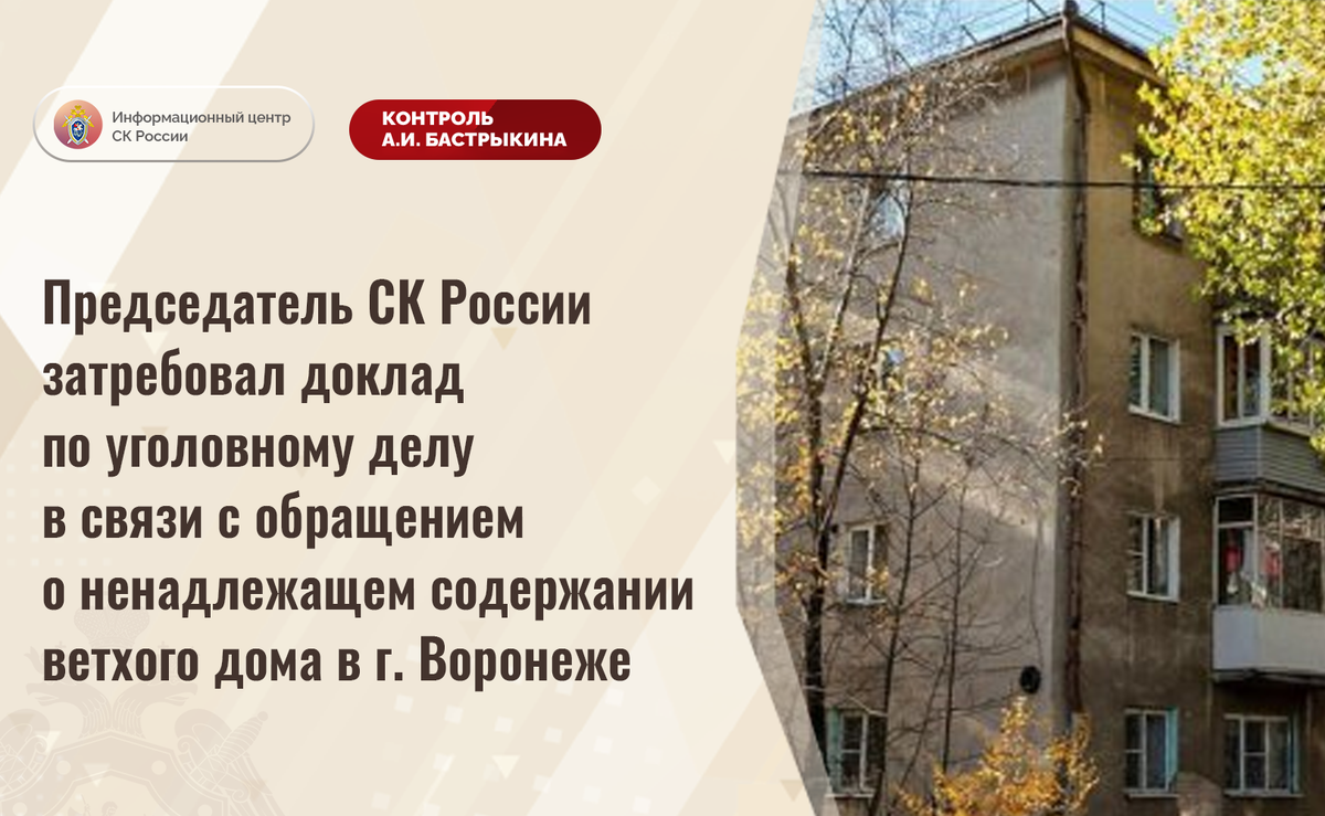 Председатель СК России затребовал доклад по уголовному делу в связи с обращением о ненадлежащем содержании ветхого дома в г. Воронеже
