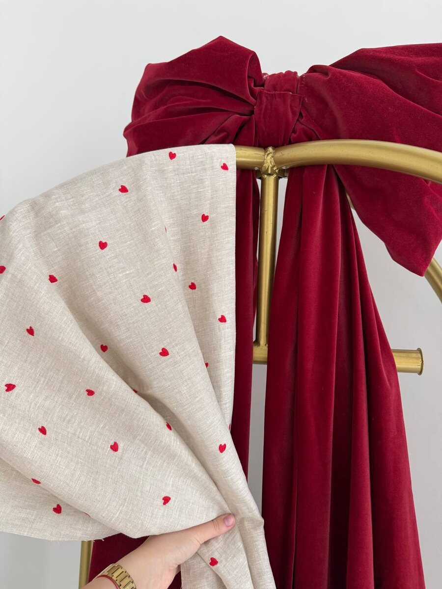 Такая нежная, воздушная, летняя, «влюбленная» ткань - натуральный лён с хлопком с вышивкой сердечки