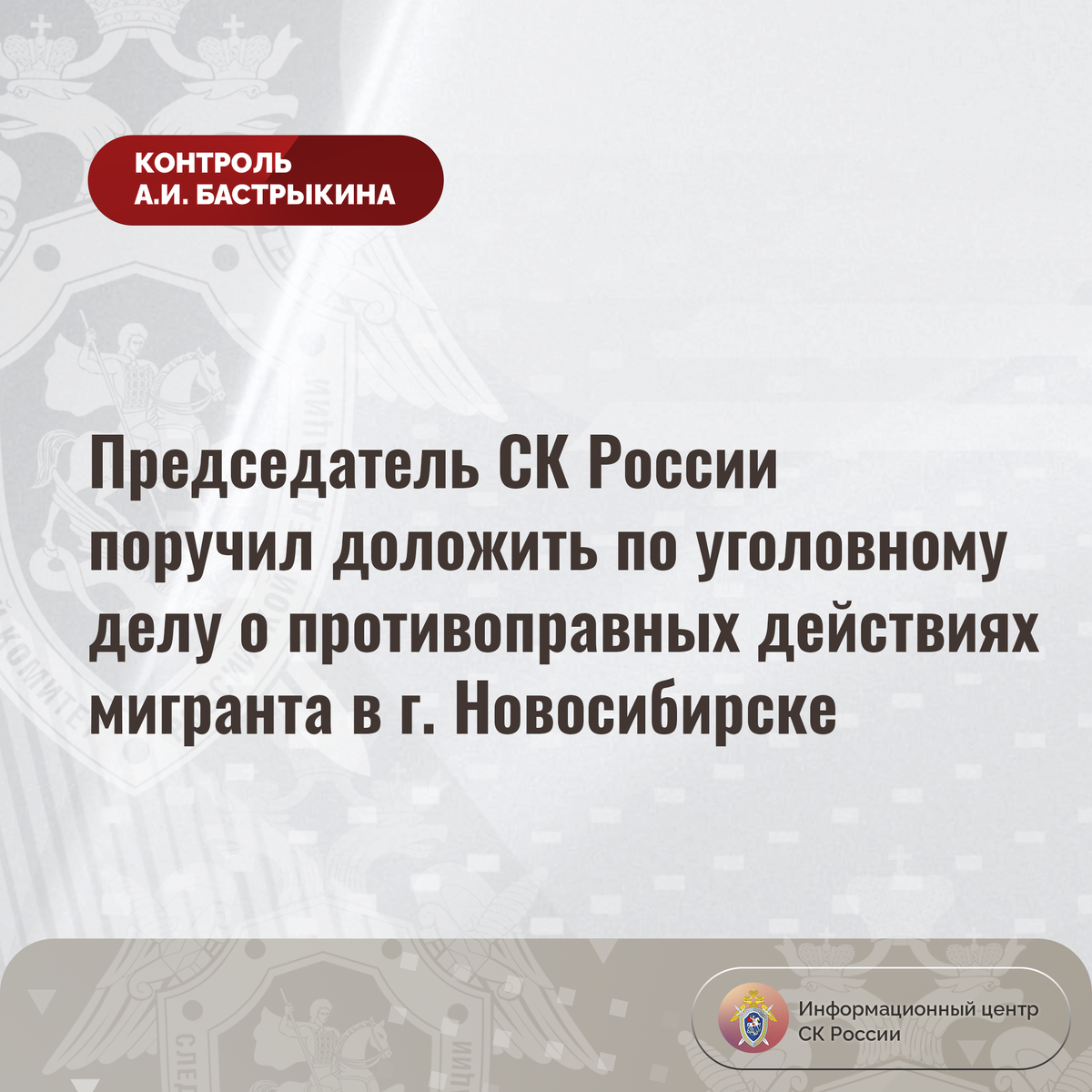 Председатель СК России поручил доложить по уголовному делу о противоправных действиях мигранта в г. Новосибирске