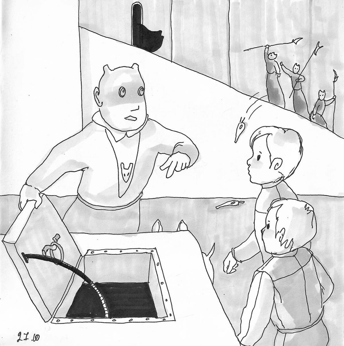 Глава 29 Потасовка длилась недолго. Шикуоны без шлемов быстро приходили в себя и принимали сторону восставших. Кохэку и Юки носились среди прибывающих по тревоге шикуонов и сбивали шлемы. Словно пожар вспыхнул от искры. Так шлем, сбитый ногой Кохэку поднял большой переполох. Когда перевес сил стал внушительным, властитель-кумо бежал в один из проходов. Бывший арестованный шикуон открыл люк в одном из пьедесталов пирамидальных башенок. - Этот ход ведёт на крышу! - объяснил он. - Вы успеете раньше властителя добраться до его личного «Ворона». Только в нём есть кристалл полёта. Ход узковат, но вы сможете! Эти дымные башни только готовились к запуску. Газа там нет. Глава 30 ...Принцы бросились к проёму. - Эх, опоздали! - вскричал Кохэку. Кумо уже усаживался в кабине пилота. Увидев принцев, он встал и подняв над головой копье с хрустом разломил его. - Так будет с вами! Так будет с империей Оота! - захрипел кумо. Его «Ворон» легко взмыл в небо. - По данным навигатора властитель-кумо отправил