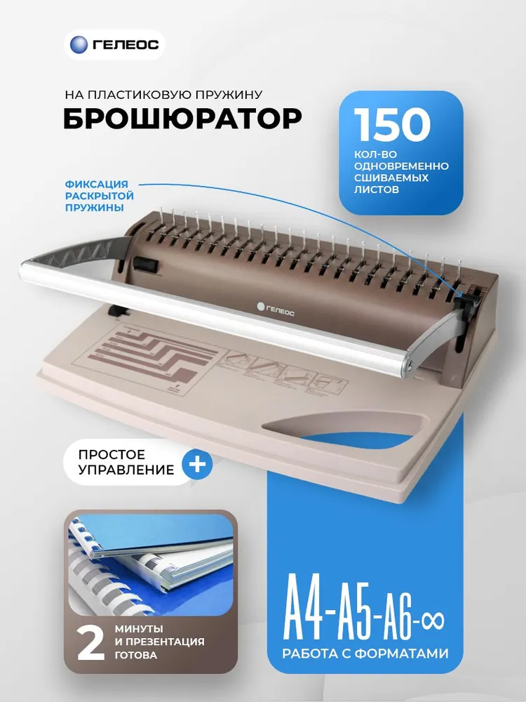 1.Брошюратор А4 на пластиковую пружину ГЕЛЕОС БП-9+, пробивает до 9 листов