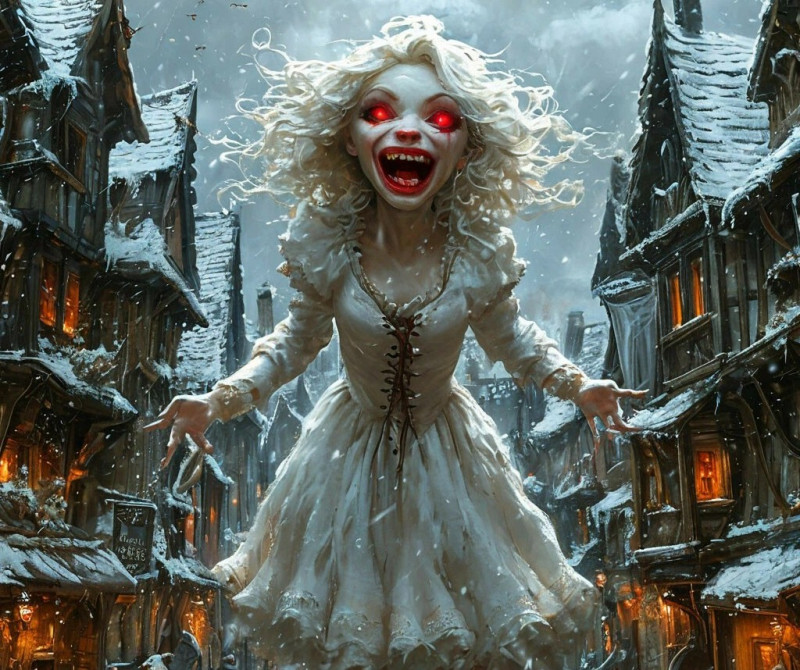 - Я же сказала, что вам не уйти! – Злорадно произнесла Мила с Мертвых улиц, щеря острые зубы, ее алые глаза горели сквозь лютый снегопад. – Сейчас Вайрат приведет остальных, и вместе мы разорвем вас на кусочки! На много мелких вкусных кусочков!