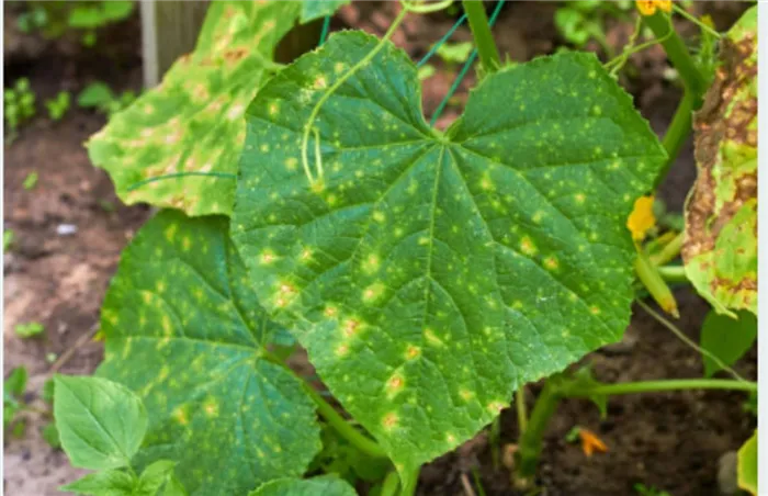 Каждый кто занимается выращиванием огурцов мечтает о большом урожае ароматных вкусных хрустящих огурчиков. Кто не сталкивался с пожелтением листьев, наверно каждый третий. Вот и я каждое лето боролась с жёлтыми пятнами на листьях огурцов, только что не делала. Пока не узнала о простых способах обработки кустов. При выращивании огурцов нужно внимание к изменениям внешнему виду кустов, их профилактика, правильное питание, полив позволят вырастить здоровые, крепкие, вкусные огурцы. Жёлтые пятна на огурцах появляются по разным причинам, а их существует несколько. Разглядываем листья и определяем. Зелёная равномерная окраска листьев, признак здоровья. Если начали желтеть средние, верхние молодые листья, то нужно бить тревогу, а если нижние, то не страшно. это старые. Если во время не принять меры, то можно потерять большую часть урожая. Жёлтые пятнышки в местах проколов, через которые вредитель высасывают сок у растения. На обратной стороне можно увидеть тонкую паутину с ползающими по ней к